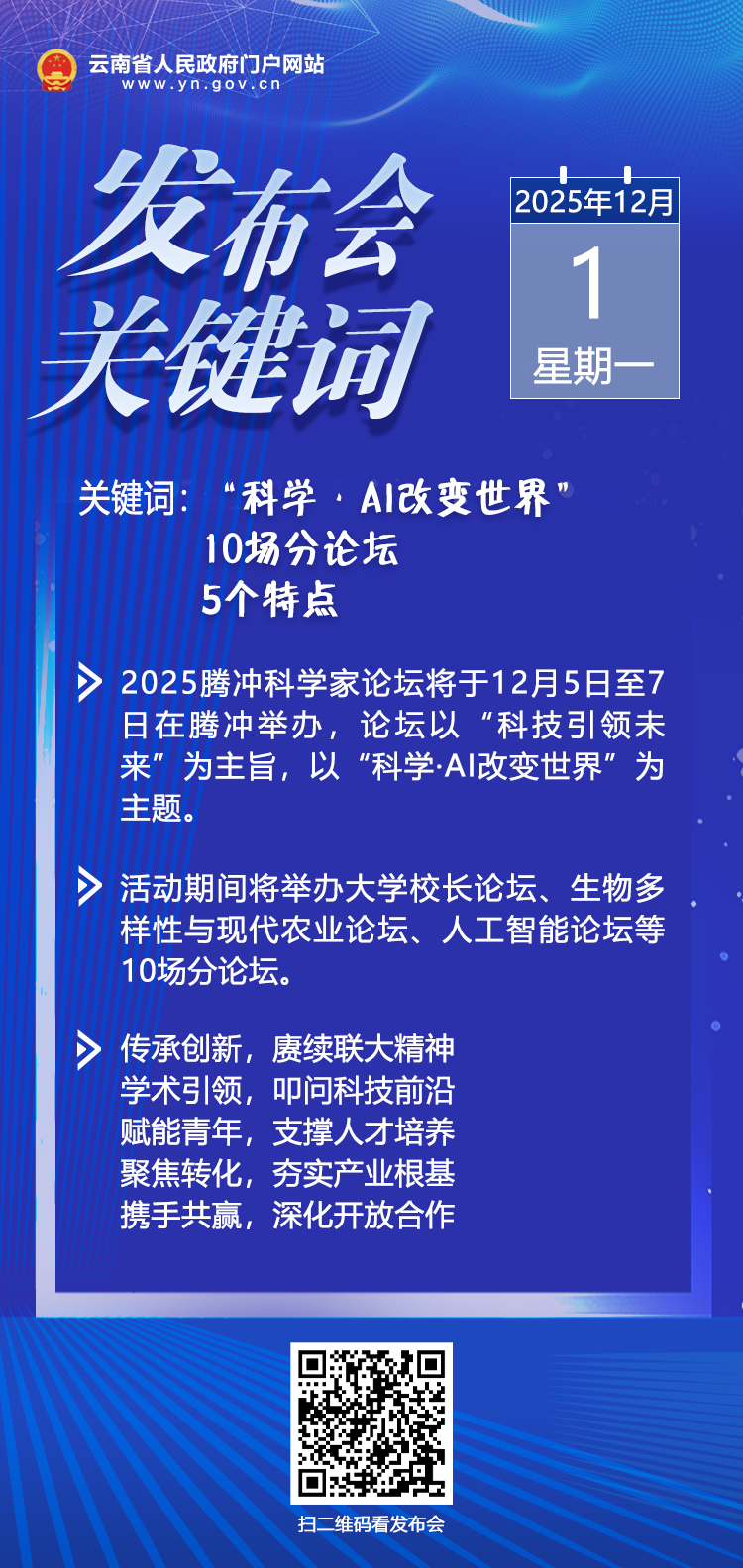 2025腾冲科学家论坛将于12月5日至7日,在“极边第一城”腾冲与各界新老朋友再度相逢。本届论坛以“科技引领未来”为主旨,以“科学·AI改变世界”为主题,已全面准备就绪。